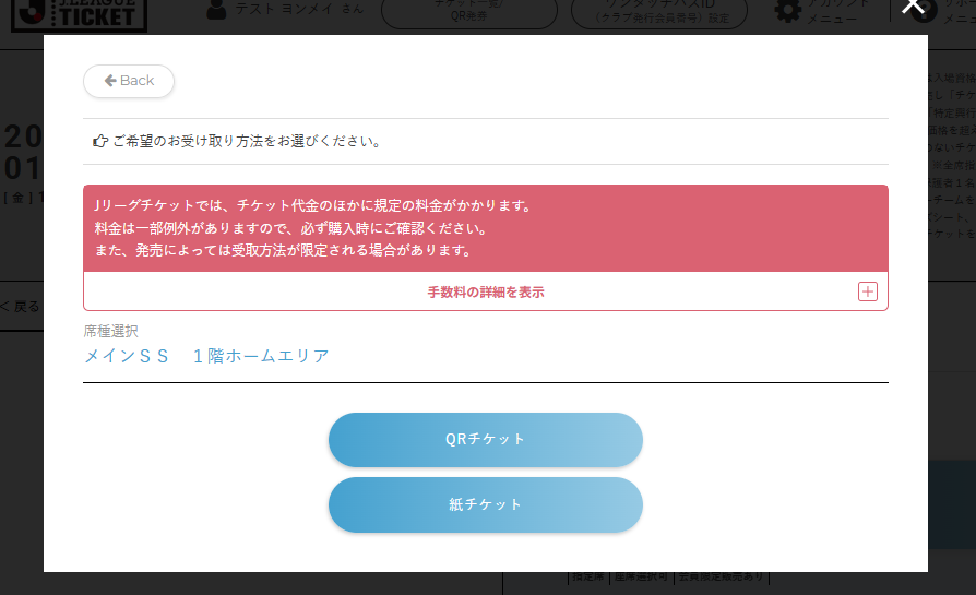 購入する試合と席種を選択した後、発券方法選択画面で「QRチケット」を選択してください。
